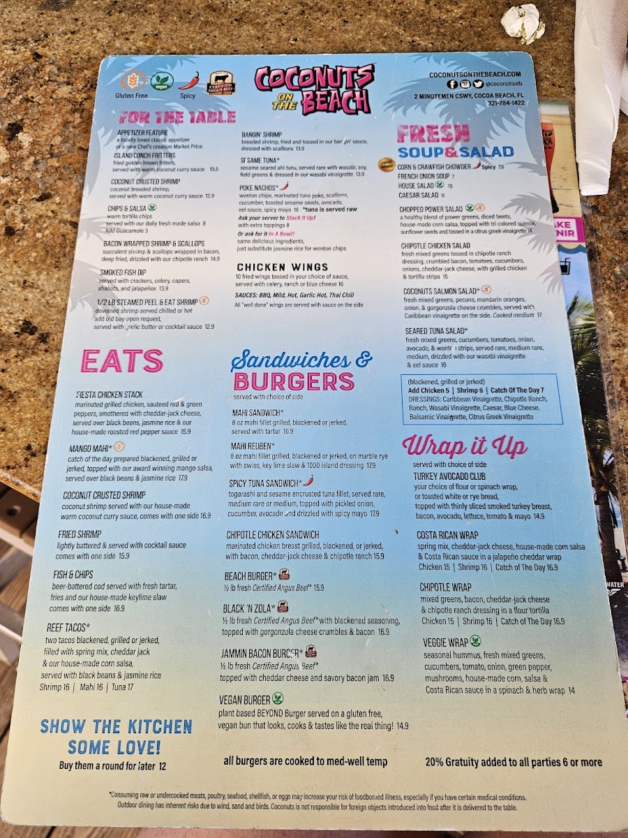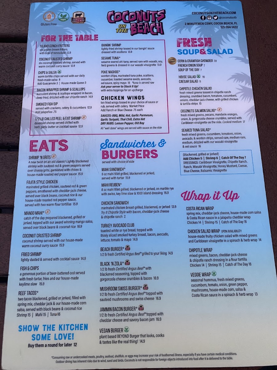 Welcome to Coconuts on the Beach, a gem located on the vibrant Cocoa Beach in Florida. This Floridian restaurant brings together the essence of beachside dining with a laid-back, tropical atmosphere that perfectly complements its stunning coastal views. Whether you're looking to enjoy a refreshing drink or indulge in a delectable meal, Coconuts is a must-visit destination.