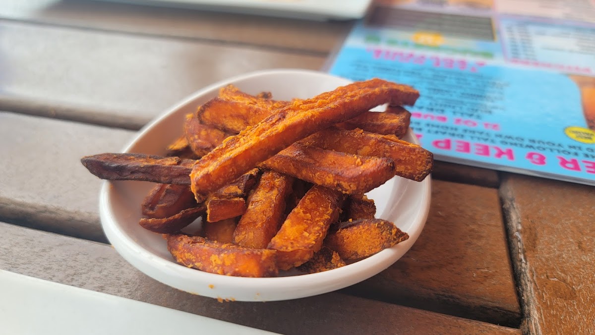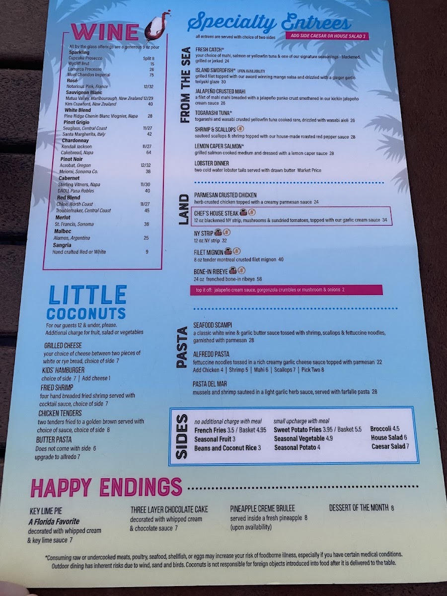 As you sip on a refreshing drink, make sure to pair it with one of their delicious appetizers. The coconut shrimp is a crowd favorite, and Desiree McConnell raved about the sweet potatoes accompanying it, exclaiming, “you can’t beat the view!” With many tables positioned for the ultimate beach experience, your meal becomes an unforgettable moment against the backdrop of the sunset shimmering over the ocean.
